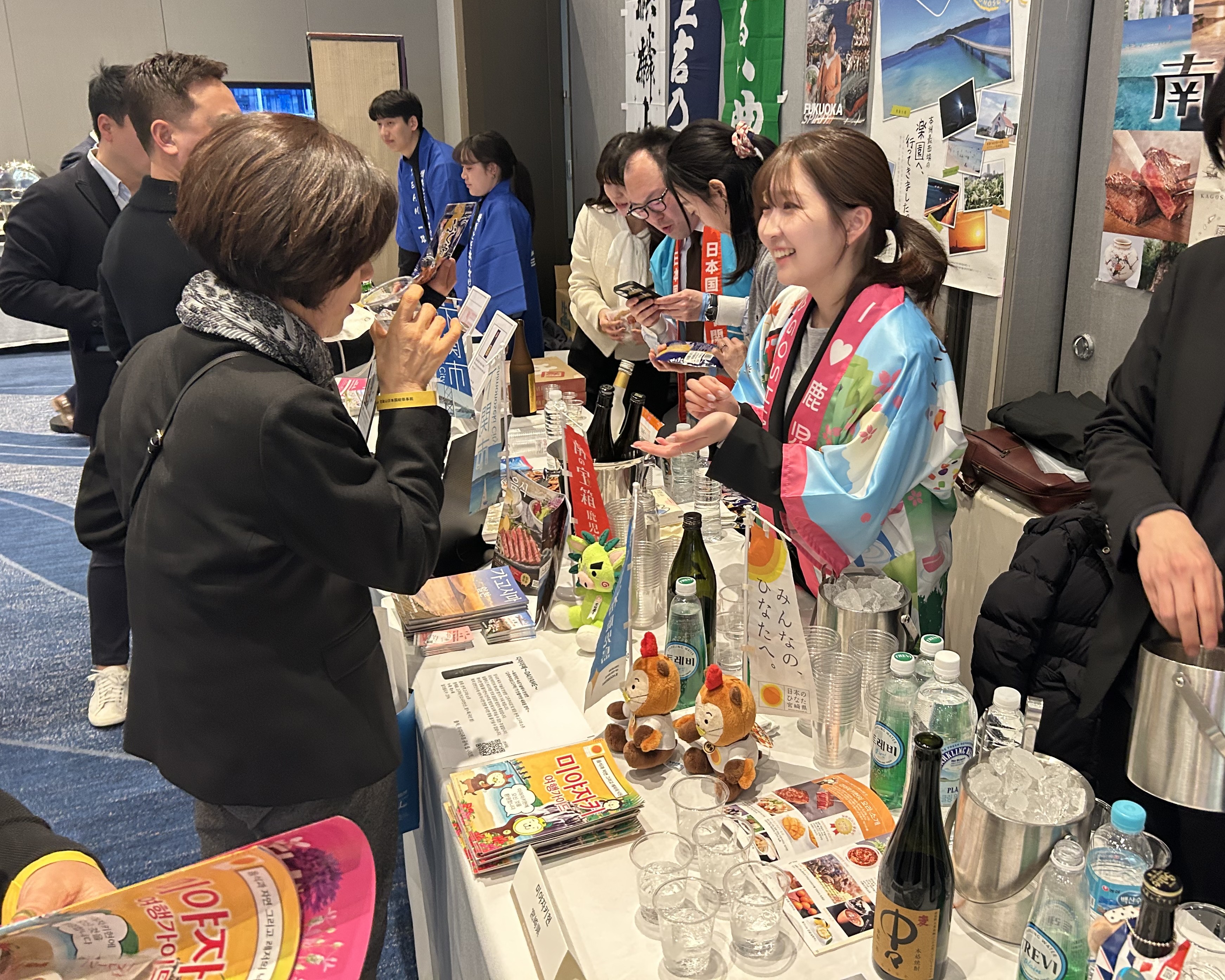 부산에서 개최된 리셉션에는 에히메현, 미야자키현, 가고시마현에서 파견된 직원들이 참가하여 각 지역의 사케와 소주를 제공하며 관광 홍보를 실시했습니다. CLAIR 서울사무소 외에도 서울에 사무소를 두고 있는 북도호쿠3현·홋카이도 및 니가타현 등에 더해, 야마구치현 시모노세키시, 후쿠오카현 후쿠오카시 등도 참가했습니다.