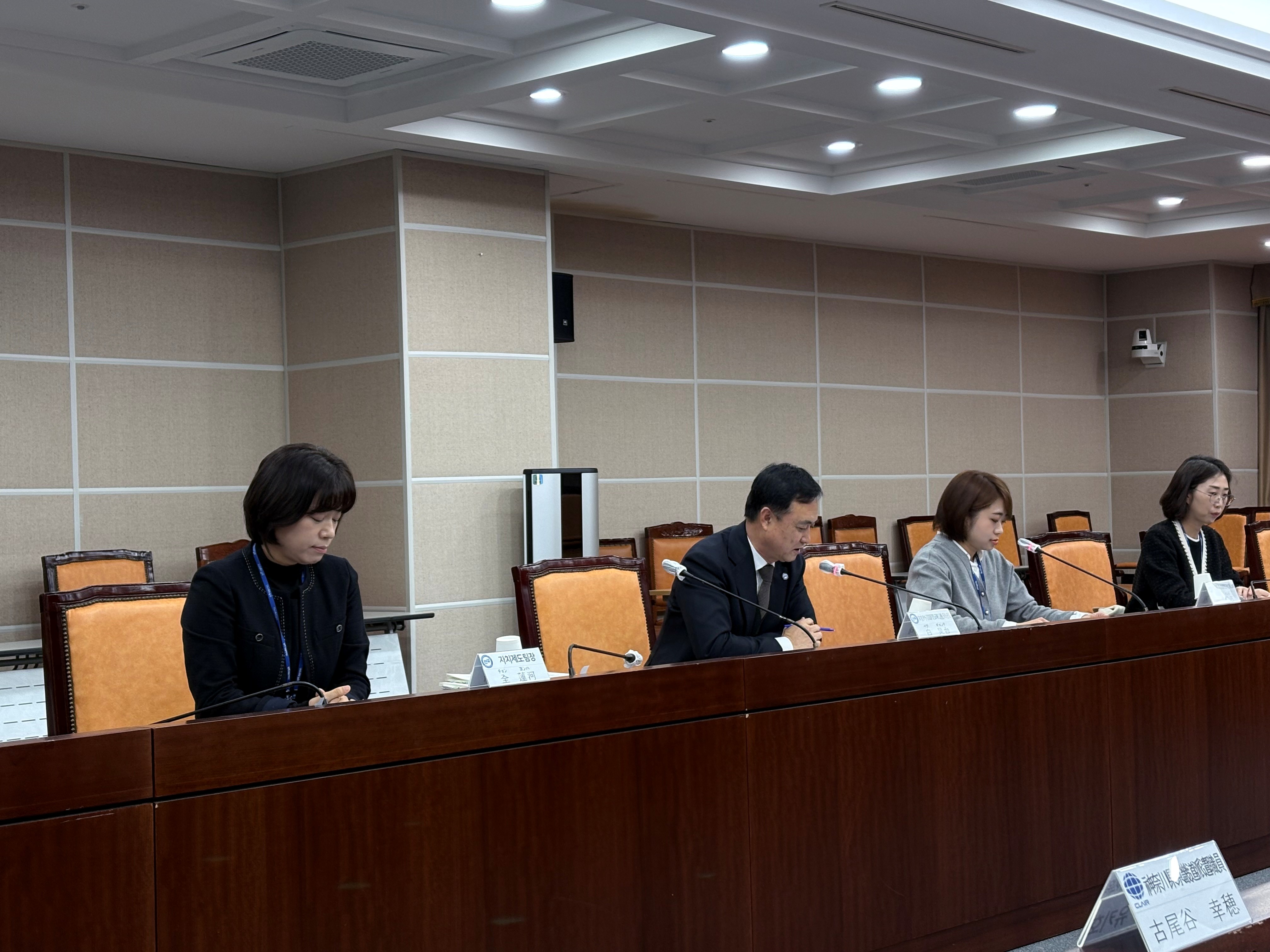 도청을 방문해 2024년에 정부로부터 다양한 권한을 이양받아 ‘특별자치도’로 전환된 배경과 이에 따른 변화 등 전북의 다양한 시책에 관한 설명을 들었습니다. 일본측 참가자들도 각자의 원소속 지자체의 국제교류 사례와 관광 시책 등에 대해 발표하고, 상호 의견을 교환하는 시간을 가졌습니다.