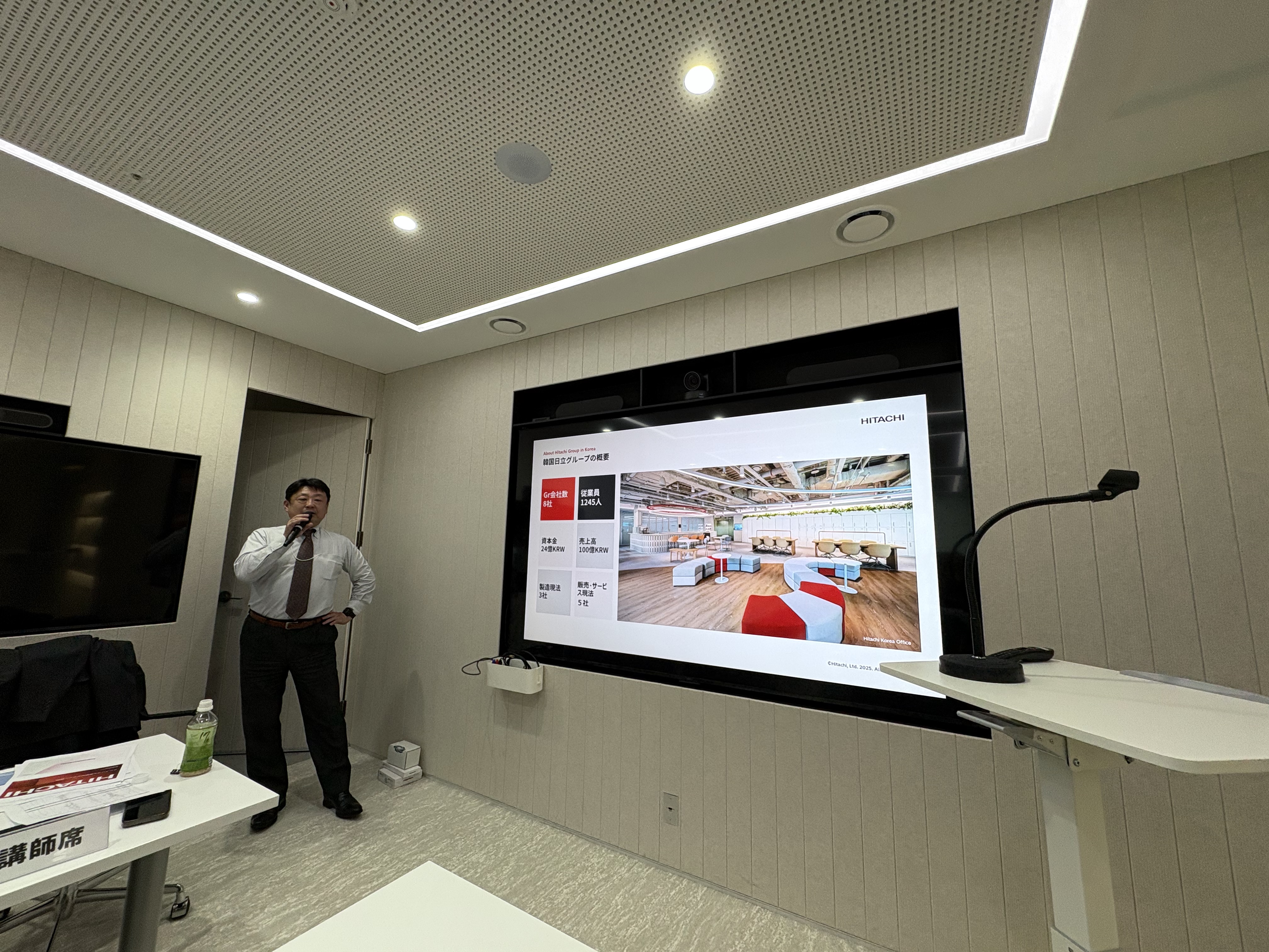 먼저 한국 히타치의 오오타니 토오루 대표이사 사장님의 강연을 들었습니다. 히타치 그룹의 개요 및 1962년 히타치 코리아 설립 이후 한국에서 전개해 온 주요 사업에 대한 설명과 함께, 한국에서의 미션에 대해서도 소개해 주셨습니다.